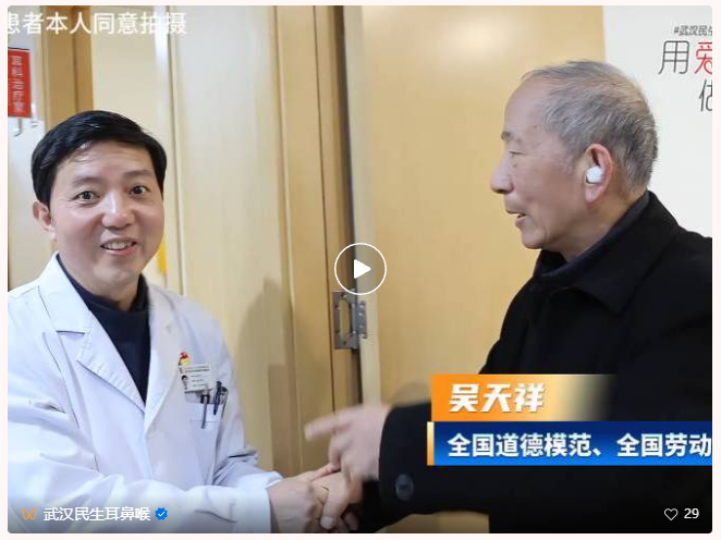近日,全国道德模范、全国劳动模范吴天祥老先生专程来到武汉民生耳鼻喉专科医院,将一面饱含敬意的锦旗郑重赠予院长姚行齐教授,对医院专业的诊疗水平与细致入微的关怀表达由衷感谢,留下一段暖心的医患佳话。